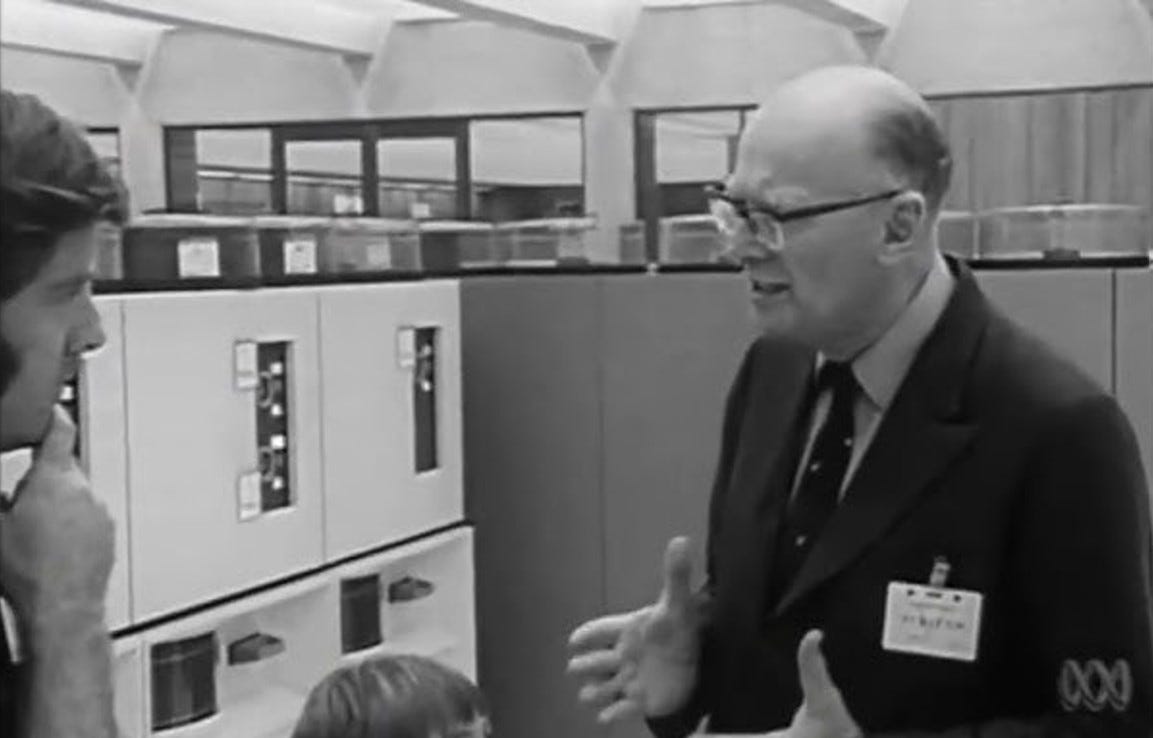 ‘In 1974, science fiction writer Arthur C Clarke makes the bold claim to an ABC journalist that one day computers will allow people to work from home and access their banking records.’